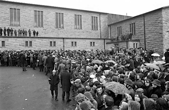 (Pictured: Thousands congregate at St. Mary’s Chapel in Creggan for the funerals on February 2, 1972, photo credit: Derry Journal)