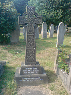 Drew dies at her home in Holland Street, Kensington, on August 26, 1910, and is buried at the Royal Borough of Kensington and Chelsea Cemetery, Hanwell. Lady Drew, her sister-in-law, erects a Celtic cross memorial there in her honour. She bequeaths a jewel-studded gold bracelet to the Institute of Journalists, which had been presented to her by the Institute to mark her retirement in 1908. It is worn by women presidents or the wives of male presidents, and is known as the “Drew Bracelet.”