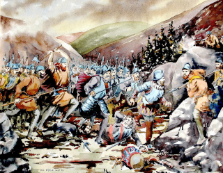 The Battle of Glenmalure (Irish: Cath Ghleann Molúra) takes place in Glenmalure, a steep U-shaped glacial valley in County Wicklow that is surrounded by forests and bogs, on August 25, 1580, during the Desmond Rebellions. A Catholic army of united Irish clans from the Wicklow Mountains led by Fiach MacHugh O’Byrne and James Eustace, 3rd Viscount Baltinglass of the Pale, defeat an English army under Arthur Grey, 14th Baron Grey de Wilton, at Clan O’Byrne‘s mountain stronghold of Glenmalure.